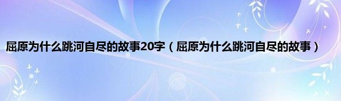 本文,屈原为什么跳河自尽的故事20字,屈原为什么跳河自尽的故事到此就分享完毕,希望对大家有所帮助。