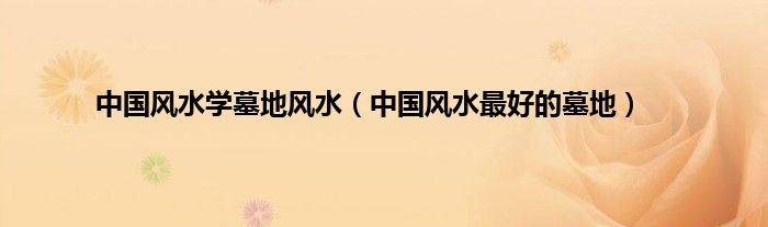 中国风水学墓地风水(中国风水最好的墓地)