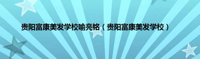 大家好,小问来为大家解答以上问题。贵阳富康美发学校喻亮铭,贵阳富康美发学校这个很多人还不知道,现在让我们一起来看看吧!
