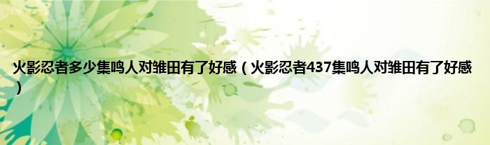 大家好,火影忍者多少集鸣人对雏田有了好感,火影忍者437集鸣人对雏田有了好感很多人还不知道,现在让我们一起来看看吧!