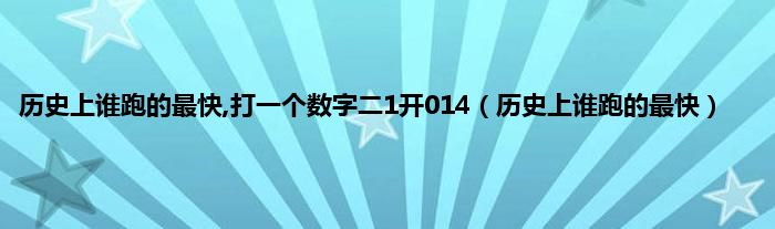 大家好,小问来为大家解答以上问题。历史上谁跑的最快,打一个数字二1开014,历史上谁跑的最快这个很多人还不知道,现在让我们一起来看看吧!