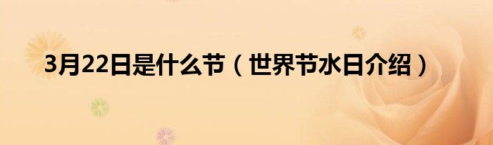 本文,3月22日是什么节,世界节水日介绍到此就分享完毕,希望对大家有所帮助。