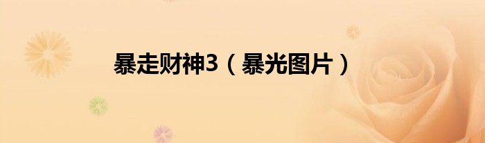 大家好,小问来为大家解答以上问题。暴走财神3,暴光图片这个很多人还不知道,现在让我们一起来看看吧!