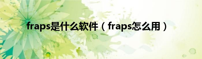 以上就是【fraps是什么软件,fraps怎么用】相关内容。