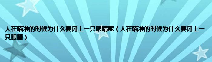 以上就是【人在瞄准的时候为什么要闭上一只眼睛呢,人在瞄准的时候为什么要闭上一只眼睛】相关内容。