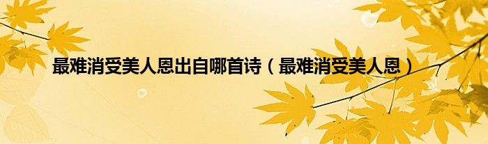 最难消受美人恩出自哪首诗(最难消受美人恩)