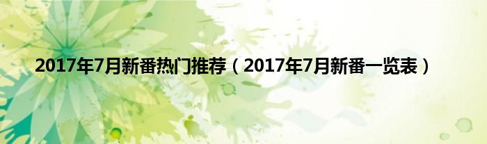 本文2017年7月新番热门推荐,2017年7月新番一览表到此分享完毕,希望对大家有所帮助。
