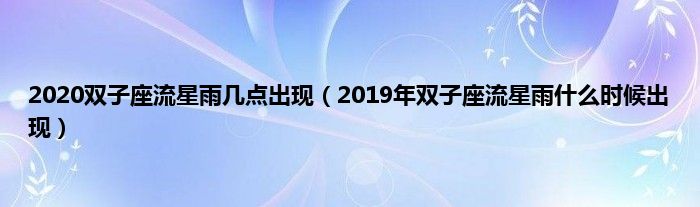 大家好,综合小编来为大家讲解下。2020双子座流星雨几点出现,2019年双子座流星雨什么时候出现这个很多人还不知道,现在让我们一起来看看吧!