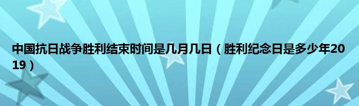 大家好,综合小编来为大家讲解下。中国抗日战争胜利结束时间是几月几日,胜利纪念日是多少年2019这个很多人还不知道,现在让我们一起来看看吧!