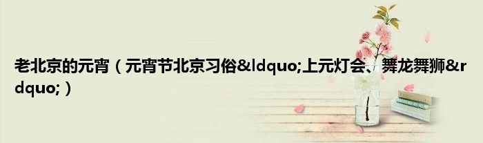 大家好,综合小编来为大家讲解下。老北京的元宵,元宵节北京习俗“上元灯会、舞龙舞狮”这个很多人还不知道,现在让我们一起来看看吧!