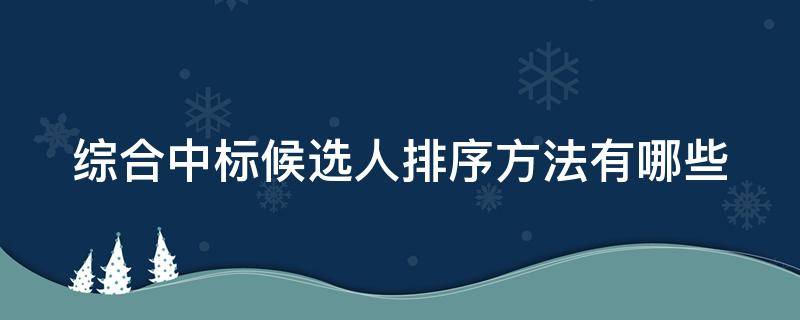 综合中标候选人排序方法有综合评估法、综合评价法、综合评分法等评。采用综合评估法时,中标候选人的排列顺序是:最大限度符合要求的投标人排名第一,次之的排名第二,以此类推。中标是指招标人向经评选的投标人发出中标通知书,并在规定的时间内与之签订书面合同的行为。中标人的投标应当符合下列条件之一:能够最大限度地满足招标文件中规定的各项综合评价标准;能够满足招标文件的实质性要求,并且经评审的投标价格最低,但是投标价格低于成本的除外。