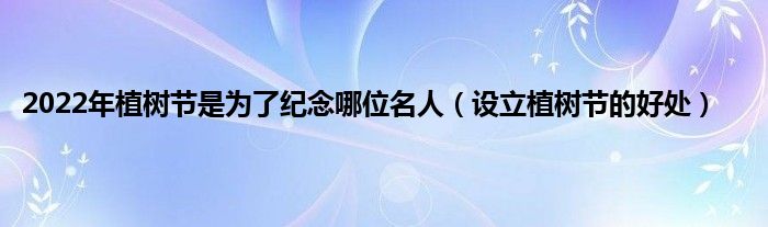 大家好,综合小编来为大家讲解下。2022年植树节是为了纪念哪位名人,设立植树节的好处这个很多人还不知道,现在让我们一起来看看吧!