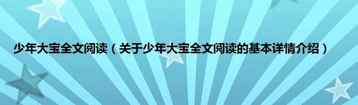 本文关于少年大宝全文阅读的基本详情介绍就讲解完毕,希望对大家有所帮助。