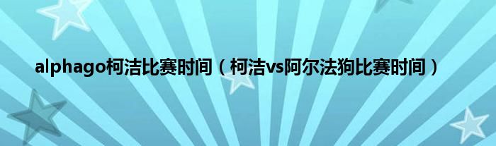 大家好,综合小编来为大家讲解下。alphago柯洁比赛时间,柯洁vs阿尔法狗比赛时间这个很多人还不知道,现在让我们一起来看看吧!