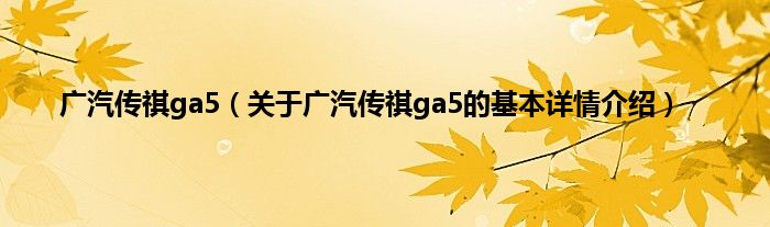 本文关于广汽传祺ga5的基本详情介绍就讲解完毕,希望对大家有所帮助。