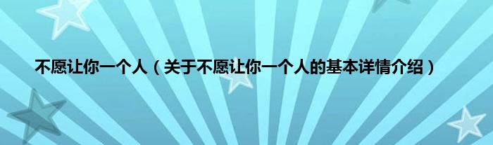 本文关于不愿让你一个人的基本详情介绍就讲解完毕,希望对大家有所帮助。