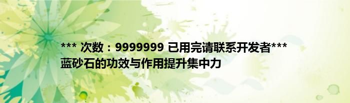大家好,综合小编来为大家讲解下。*** 次数:9999999 已用完请联系开发者*** 蓝砂石的功效与作用提升集中力这个很多人还不知道,现在让我们一起来看看吧!
