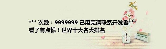 本文*** 次数:9999999 已用完请联系开发者*** 看了有点慌!世界十大名犬排名到此分享完毕,希望对大家有所帮助。