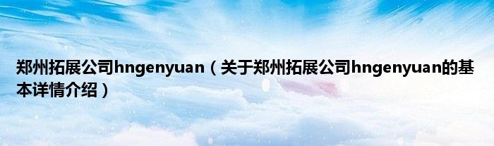 郑州拓展公司hngenyuan(关于郑州拓展公司hngenyuan的基本详情介绍)