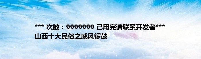 本文*** 次数:9999999 已用完请联系开发者*** 山西十大民俗之威风锣鼓到此分享完毕,希望对大家有所帮助。