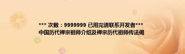 本文*** 次数:9999999 已用完请联系开发者*** 中国历代禅宗祖师介绍及禅宗历代祖师传法偈到此分享完毕,希望对大家有所帮助。
