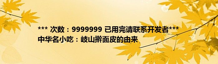 ***次数:9999999已用完请联系开发者***中华名小吃:岐山擀面皮的由来