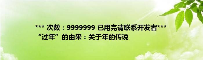 大家好,综合小编来为大家讲解下。*** 次数:9999999 已用完请联系开发者*** “过年”的由来:关于年的传说这个很多人还不知道,现在让我们一起来看看吧!