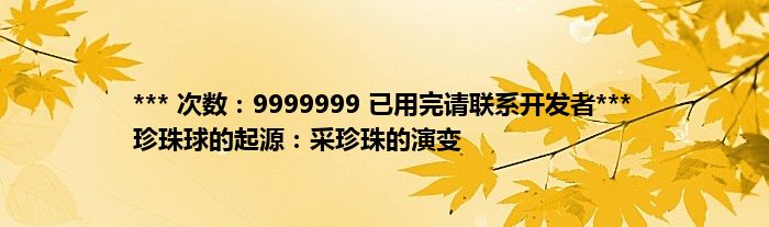 *** 次数:9999999 已用完请联系开发者*** 珍珠球的起源:采珍珠的演变