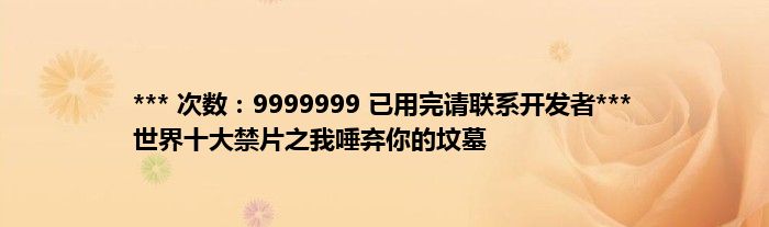 本文*** 次数:9999999 已用完请联系开发者*** 世界十大禁片之我唾弃你的坟墓到此分享完毕,希望对大家有所帮助。
