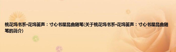 桃花坞书系·花坞笛声:寸心书屋昆曲随笔(关于桃花坞书系·花坞笛声:寸心书屋昆曲随...