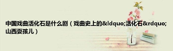 大家好,综合小编来为大家讲解下。中国戏曲活化石是什么剧,戏曲史上的“活化石”山西耍孩儿这个很多人还不知道,现在让我们一起来看看吧!