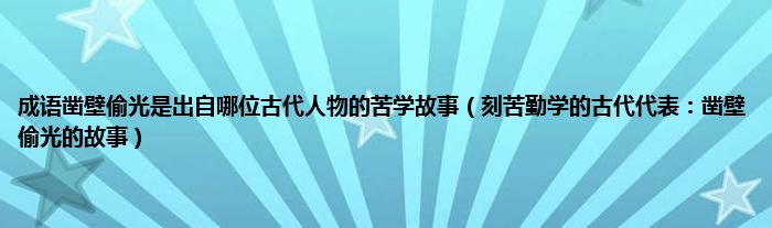 大家好,综合小编来为大家讲解下。成语凿壁偷光是出自哪位古代人物的苦学故事,刻苦勤学的古代代表:凿壁偷光的故事这个很多人还不知道,现在让我们一起来看看吧!