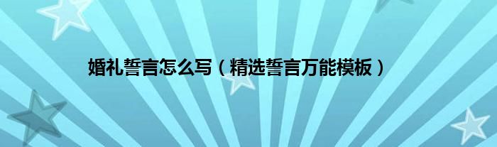 大家好,综合小编来为大家讲解下。婚礼誓言怎么写,精选誓言万能模板这个很多人还不知道,现在让我们一起来看看吧!