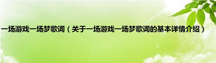 本文关于一场游戏一场梦歌词的基本详情介绍就讲解完毕,希望对大家有所帮助。