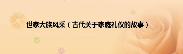 本文世家大族风采,古代关于家庭礼仪的故事到此分享完毕,希望对大家有所帮助。