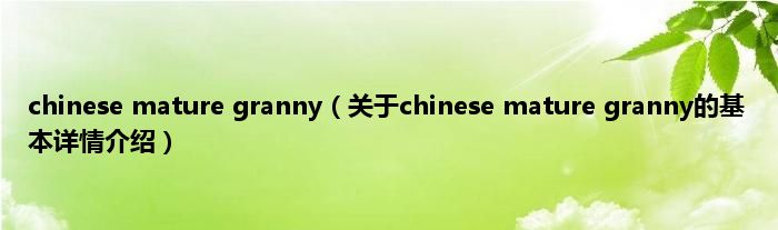 本文关于chinese mature granny的基本详情介绍就讲解完毕,希望对大家有所帮助。