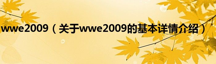 本文关于wwe2009的基本详情介绍就讲解完毕,希望对大家有所帮助。