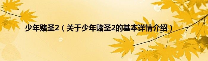 本文关于少年赌圣2的基本详情介绍就讲解完毕,希望对大家有所帮助。