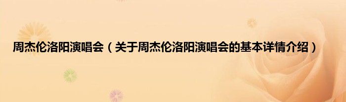 本文关于周杰伦洛阳演唱会的基本详情介绍就讲解完毕,希望对大家有所帮助。