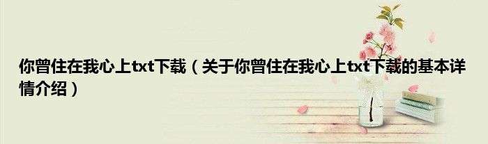 本文关于你曾住在我心上txt下载的基本详情介绍就讲解完毕,希望对大家有所帮助。