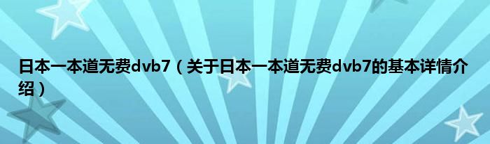 本文关于日本一本道无费dvb7的基本详情介绍就讲解完毕,希望对大家有所帮助。