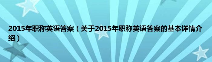 本文关于2015年职称英语答案的基本详情介绍就讲解完毕,希望对大家有所帮助。