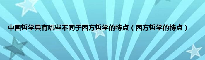 大家好,小问来为大家解答以上问题。中国哲学具有哪些不同于西方哲学的特点,西方哲学的特点这个很多人还不知道,现在让我们一起来看看吧!