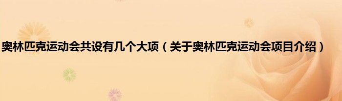 欢迎观看本篇文章,小升来为大家解答以上问题。奥林匹克运动会共设有几个大项,关于奥林匹克运动会项目介绍很多人还不知道,现在让我们一起来看看吧!
