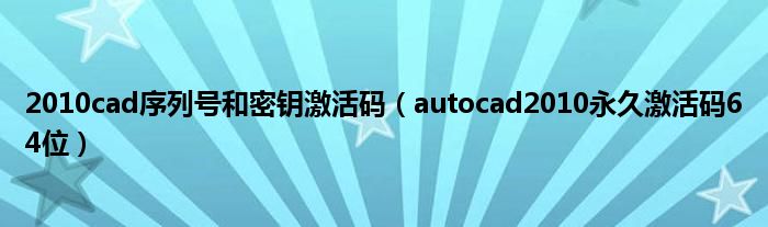 最佳答案大家好,综合小编来为大家讲解下2010cad序列号和密钥激活码,autocad2010永久激活码64位这个很多人还不知道,现在让我们一起来看看吧! 2010cad序列号和密钥激活码 2010cad序列号:356-72378422,666-69696969,667-98989898,400-45454545,653-12354321。 2010cad产品密钥:001B1 激活码:dk 61 ew ...