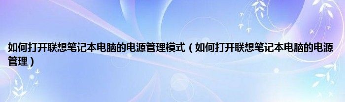 大家好,综合小编来为大家讲解下如何打开联想笔记本电脑的电源管理模式,如何打开联想笔记本电脑的电源管理这个很多人还不知道,现在让我们一起来看看吧!