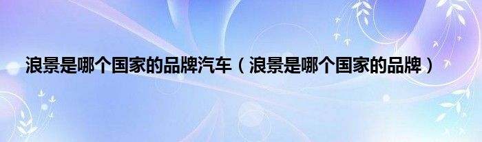 大家好,综合小编来为大家讲解下浪景是哪个国家的品牌汽车,浪景是哪个国家的品牌这个很多人还不知道,现在让我们一起来看看吧!