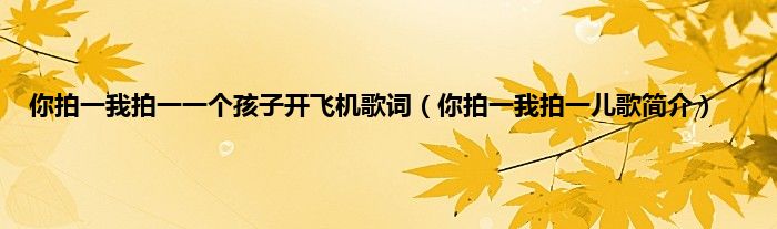 欢迎观看本篇文章,小升来为大家解答以上问题。你拍一我拍一一个孩子开飞机歌词,你拍一我拍一儿歌简介很多人还不知道,现在让我们一起来看看吧!
