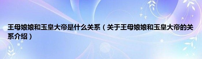 欢迎观看本篇文章,小升来为大家解答以上问题。王母娘娘和玉皇大帝是什么关系,关于王母娘娘和玉皇大帝的关系介绍很多人还不知道,现在让我们一起来看看吧!