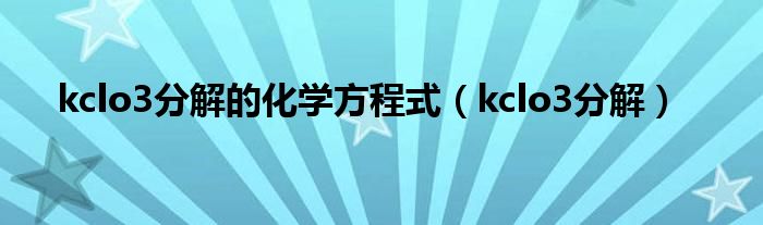 大家好,小问来为大家解答以上问题。kclo3分解的化学方程式,kclo3分解这个很多人还不知道,现在让我们一起来看看吧!